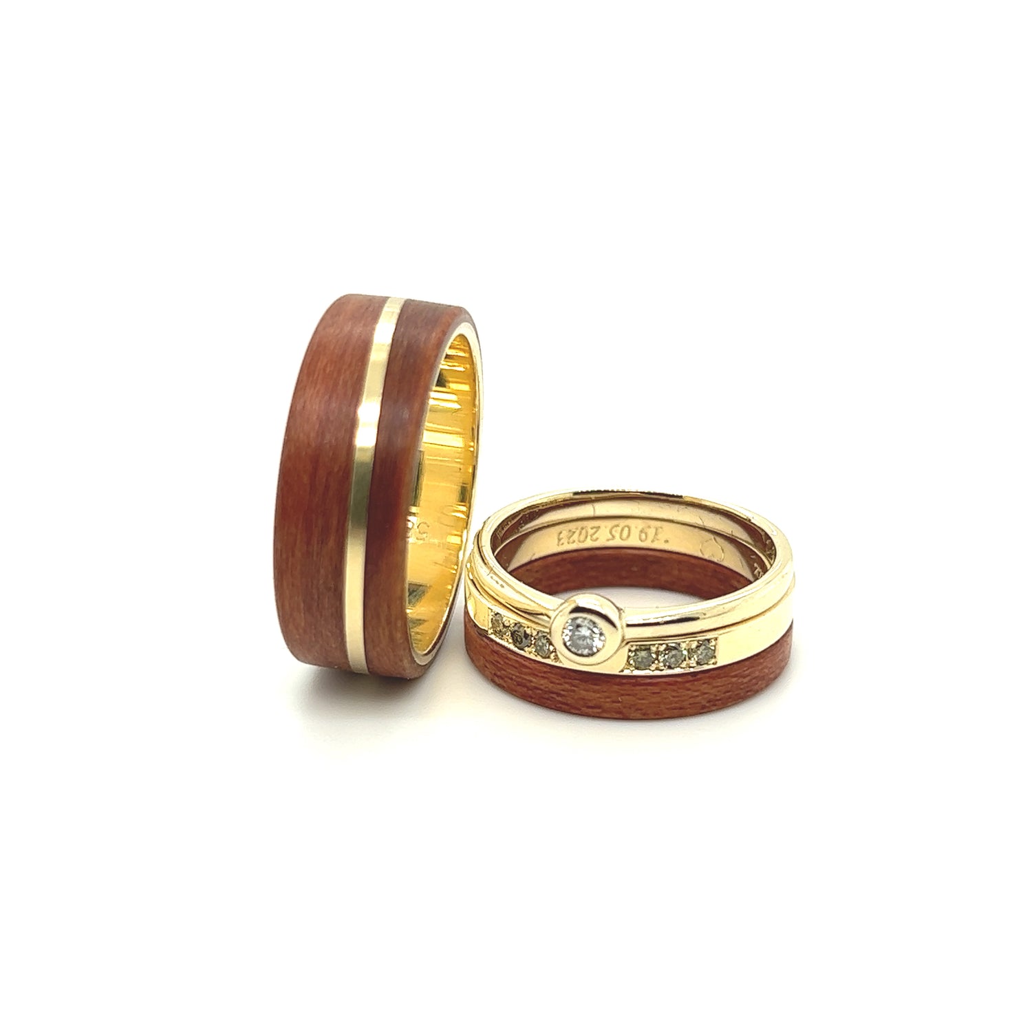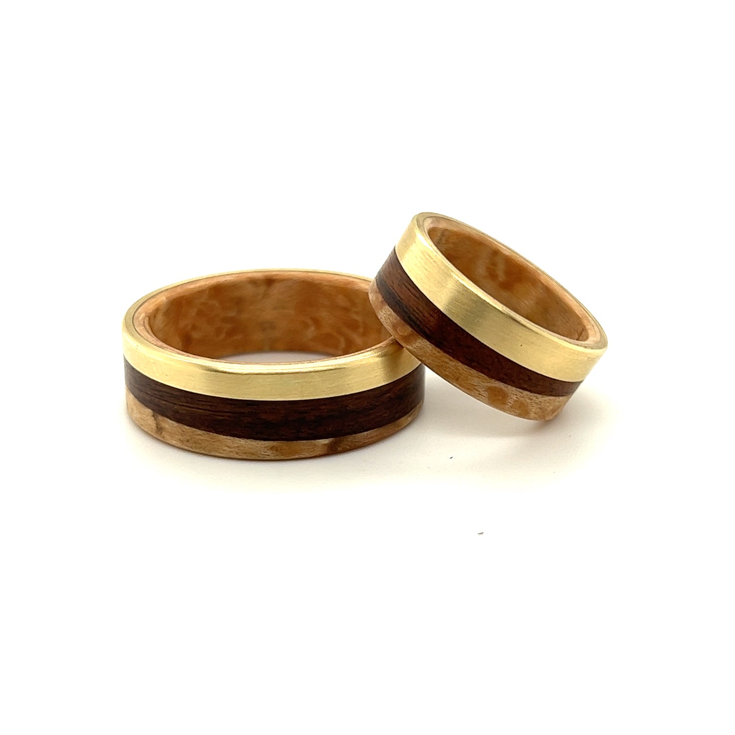 Kombination von Holzringen mit einem herkömmlichen Edelmetallring