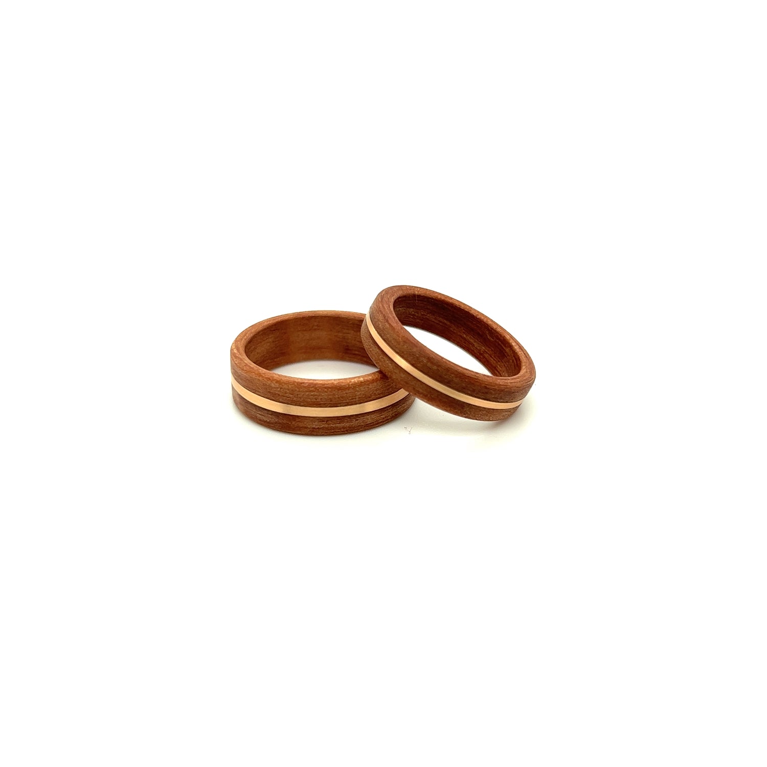 Durch ein einfaches Edelmetallinlay wird aus einem einfachen Holzring ein edles Schmuckstück, verliert dabei aber nicht seine natürliche Ausstrahlung. Diese Machart lässt sich zudem sehr individuell gestalten und die Vielzahl an Materialkombination ist nahezu grenzenlos.